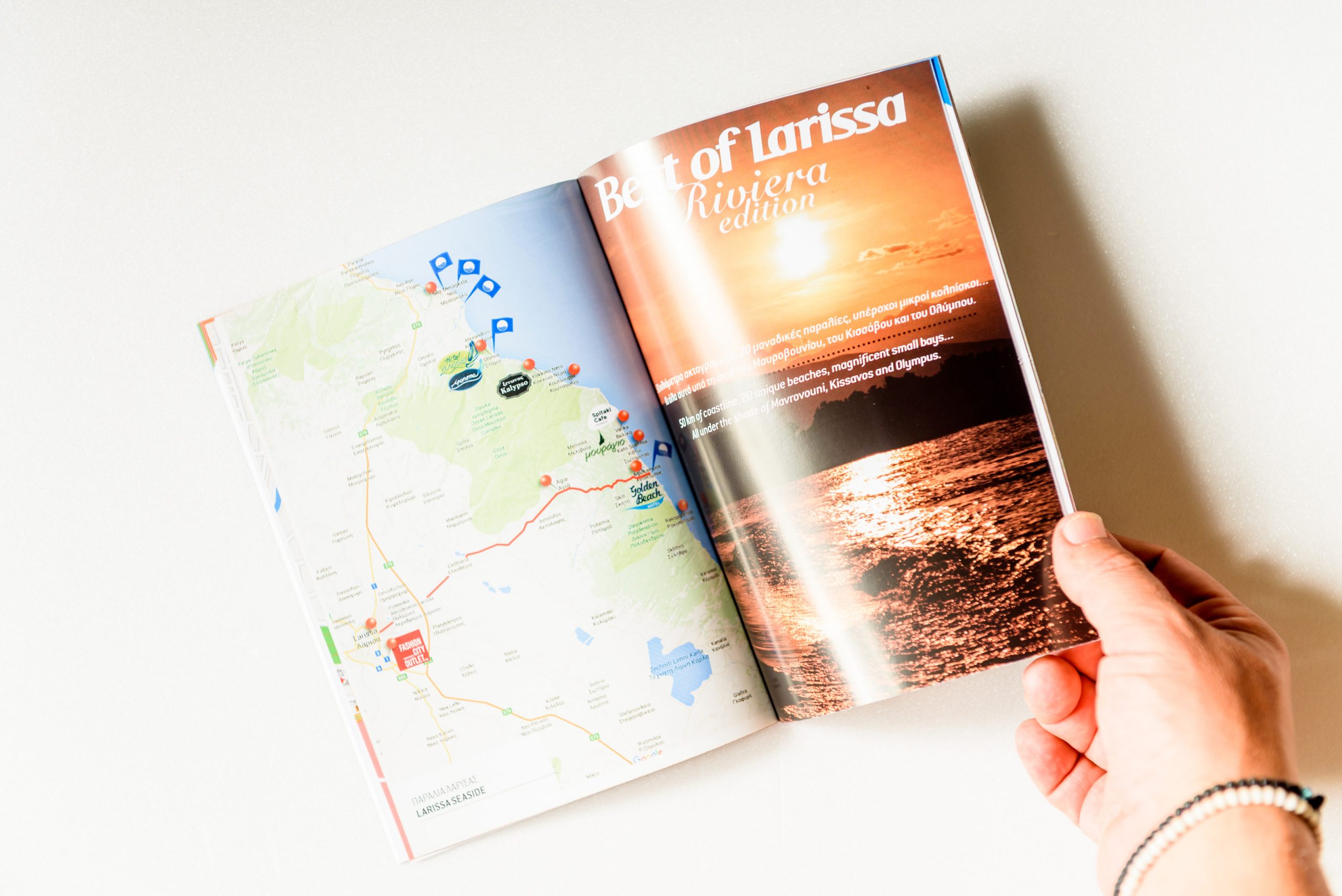 Παραγωγή τουριστικού οδηγού 60 σελίδων Best of Larissa. Πρόκειται για έναν πλήρες οδηγό, δίγλωσσο, ο οποίος καλύπτει όλο το φάσμα των πληροφοριών που χρειάζεται ο τουρίστας και ο επισκέπτης για την πόλη της Λάρισας.